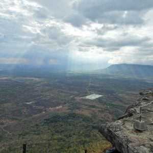 プレアヴィヒアでは山の下の駐車場に着いたときは雨だったのですが、山の上に行くと雨がやみ、長い参道を進んでいくと頂上では雲間から光がさす神秘的な光景に出会えました。断崖からの景色は絶景です。