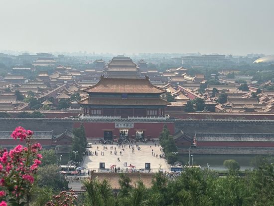 故宮博物院を神武門側から望むベストスポット!故宮の北門である神武門のさらに北に位置し、「北から入ってくる邪気から城を守る」という意味でこの位置に小高い丘が造られたんだそう。頂上にある万春亭から見下ろす故宮は絶景です!