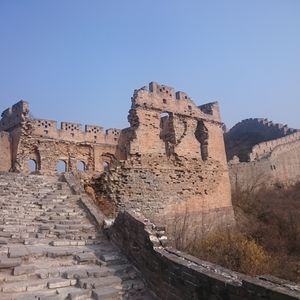 紅葉が終わりかけの晴天に恵まれ、誰もいない長城を自分のペースで歩く事が出来、モンゴル軍の侵入防止のために建築された 崩れ落ちた望楼などを見ることができて感動です。