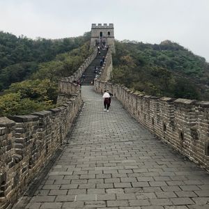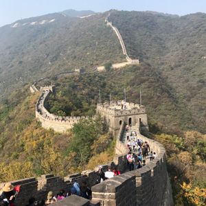国慶節の真っ只中だっため、ロープウェイに乗るまでとても時間がかかりました。でもその時間に一緒に参加したご家族と楽しくお喋りする事が出来たので、それはそれで楽しく過ごせました。ガイドの李さんのバス中での街の歴史説明はとても面白かったです!長城は日本では体験できない広さと長さで、長い歴史の中で作られ続けた場所を歩く事だけでも胸いっぱい。歩いた分だけ汗をかきました。今回は慕田峪長城でしたが、他の長城にも行ってみたいです。その時はまた李さんのお話を聞きながら…。