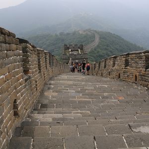 万里の長城では、女坂と男坂から選ぶように言われましたが、少し早歩きをしたら、女坂のあと、男坂の途中まで行くことができました。