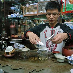 最後のお茶の屋さんは、格安ツアーのため我慢かなと思っていましたが、民族衣装の女性が色々なお茶をうんちく説明してくれ、お茶の香りを楽しみました。 売り子さんはあっさりしていました。
