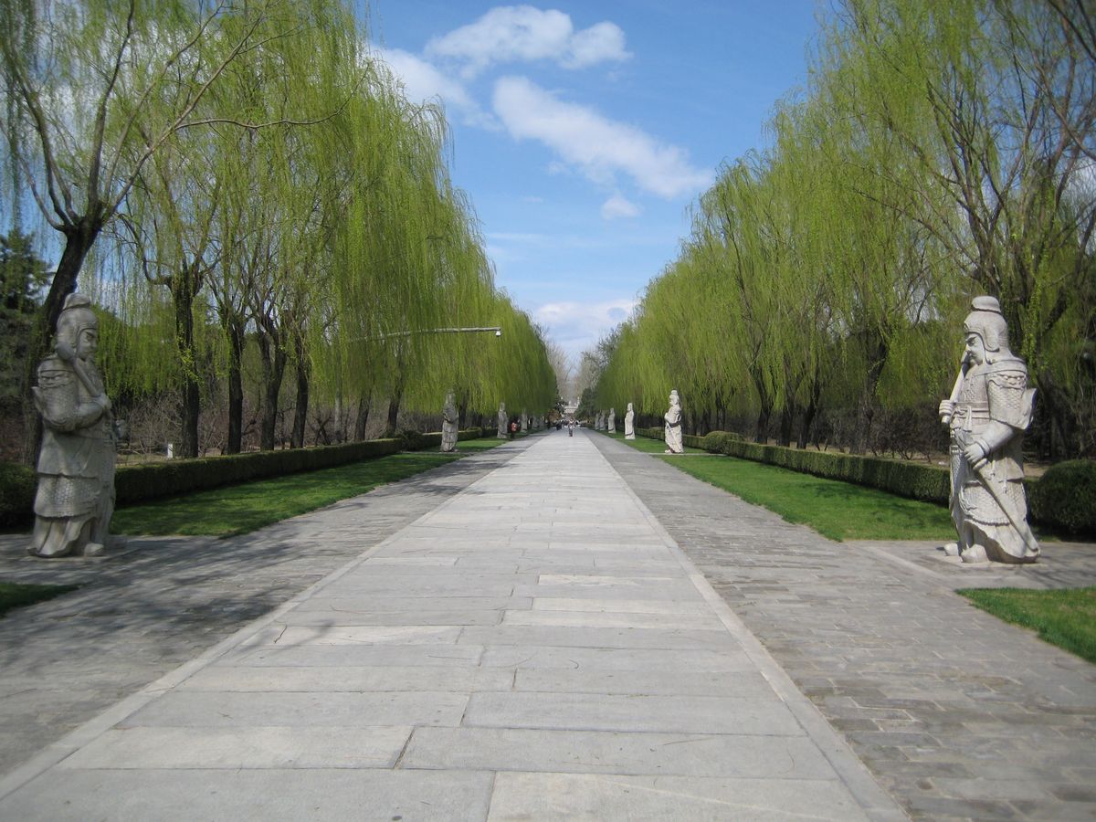 次は明の13陵。 神道は両側が柳でとってもステキに手入れされている。両側には動物&人物の石像がならんでる。らくだにのって写真とったね。