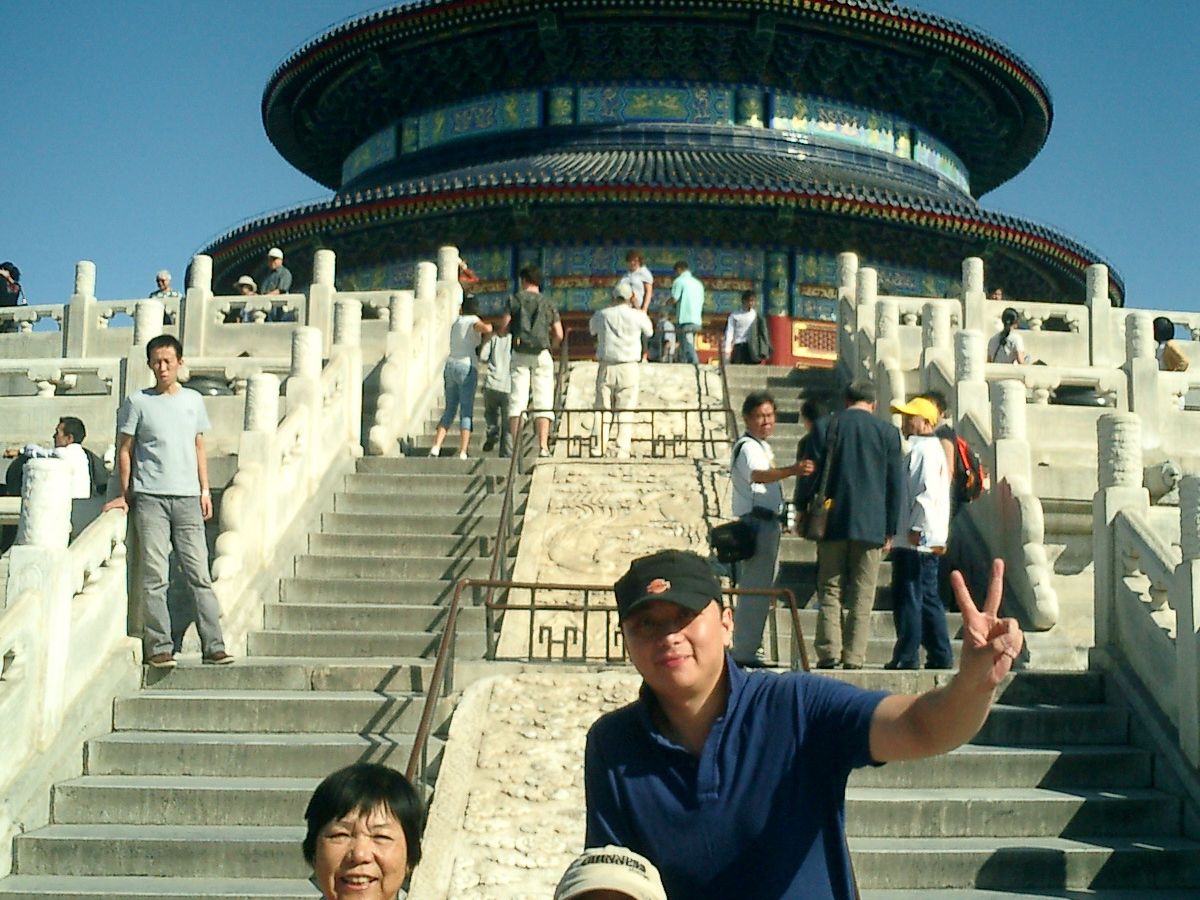 迎えに来てくれたのは張いつさん29歳の若いはきはきした元気印の方で私たちも若い気分になりました。日本語ドライバーで案内はないと聞いてましたが、とにかくとてもよく勉強していてこちらの質問には何でも答えて教えてくれるのには驚きました。ホテルのフロントで車椅子を借りてくれて1日、気分よく押して回って下さり、主人は大満足の観光でした。天壇公園、景山公園、車上から天安門広場を回りました。胡弓博物館は建国60周年のイベントのリハーサルがあるとかで午後は入場不可でしたが、北京を離れる日のフライト時間が午後だったのと、空港までの送迎も張さんだったので、午前中もチャーターして行って来ました。昼食は北京ダックを食べたいと言いましたら、地元の人がよく行く美味しい安い店を紹介してくれて、注文までお世話してくださいました。お茶を買いには地元の人ばかりで観光客はほとんど行かないという東郊市場に連れて行ってくれてウーロン茶やジャスミン茶を買いました。私はちゃっかり、美味しいお茶の入れ方を店員さんに教えてもらいました。とてもお世話になり、感謝感激です。本当に有難うございました。