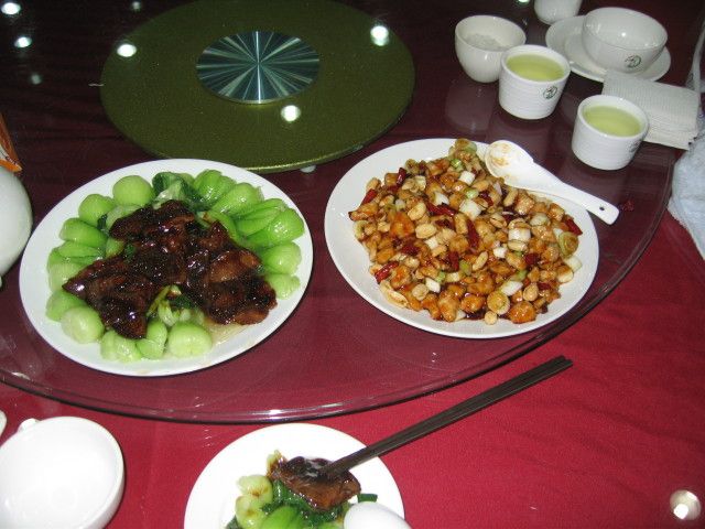 通常であれば長城の見学が終わったあとに、おいしい飲茶へ。。。となるようですが、少し早めに切り上げたため、頤和園近くの家庭料理が味わえる地元のレストランへ連れていって頂きました。そこでは北京の代表的な料理ということで「宮爆鶏丁」(鶏肉とピーナッツの炒め物)と「チンゲンサイと椎茸」を注文して頂きましたが、とってもおいしかったです。