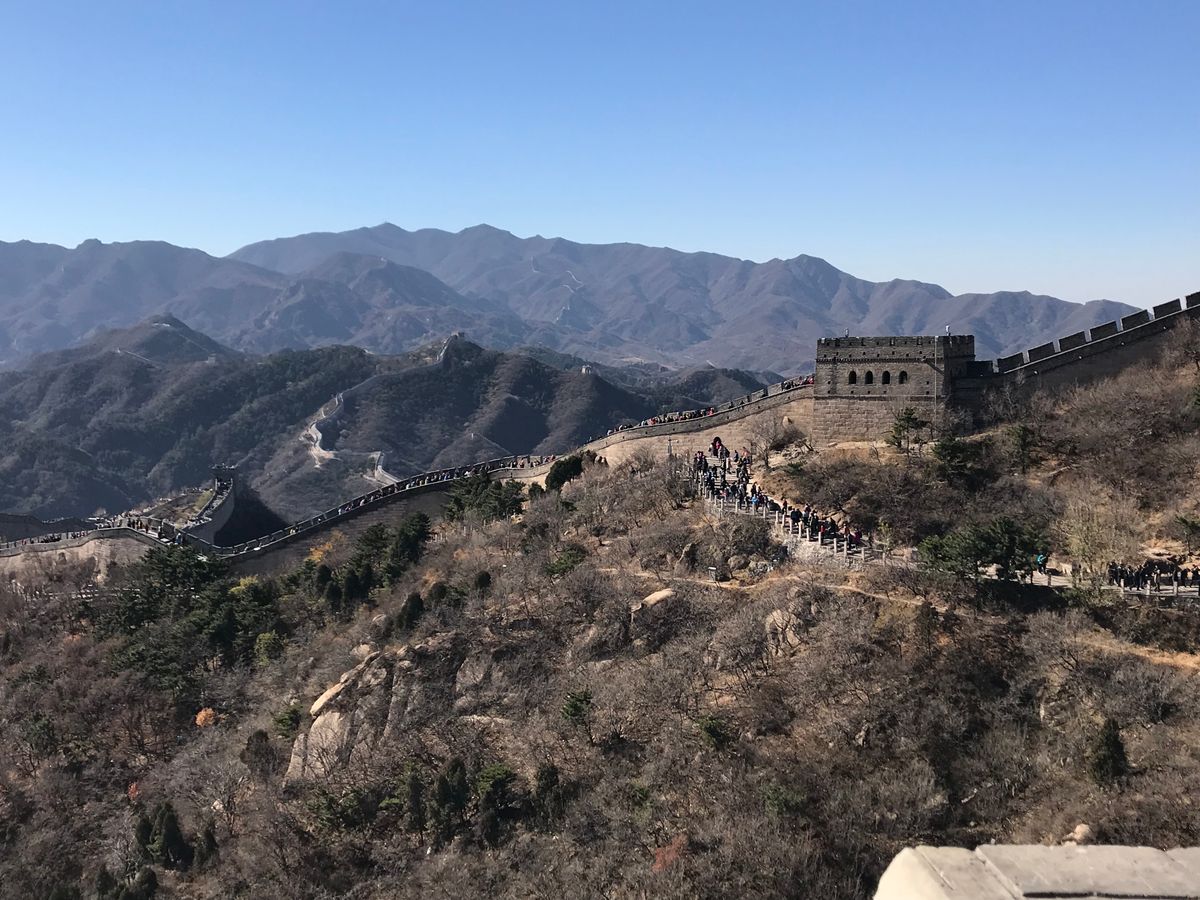 8時出発で帰りは6時半過ぎました。ガイドの日本語もまずまずで、自虐的なジョークを交えながら、わかりやすい説明でした。土曜日参加のキャンペーンとしてランチにドリンクがつけることを実施中のようです。いつまでかはわかりませんが。長城での滞在時間は1時間半程度、日没ギリギリで、もう少し早く着いて、長めにいられれば良かったですが、季節がら晴天に恵まれ、空気も澄んでいて眺めは最高でした。