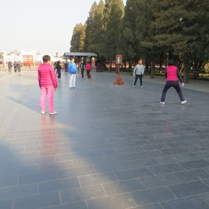 次に天壇公園へ行き、記念殿だけでなく、ツアーでは行かない、皇穹宇や圜丘に行くことができました。また、七十二長廊で、将棋やチェンズ、太極拳をして、おられるのも見ることができました。チェンズは、とっても上手でした。