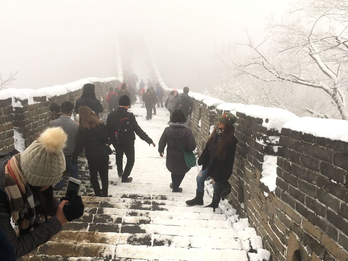 4月に30年振りに雪が降った日に、万里の長城に行ってきました。真っ白な雪景色は綺麗でしたが、雪用の服を準備してなかったので寒い❄️ たくさんの人が、階段や坂道で転んでいましたただ、観光客はほとんどいなくて、どこも並ぶことはありませんでした。