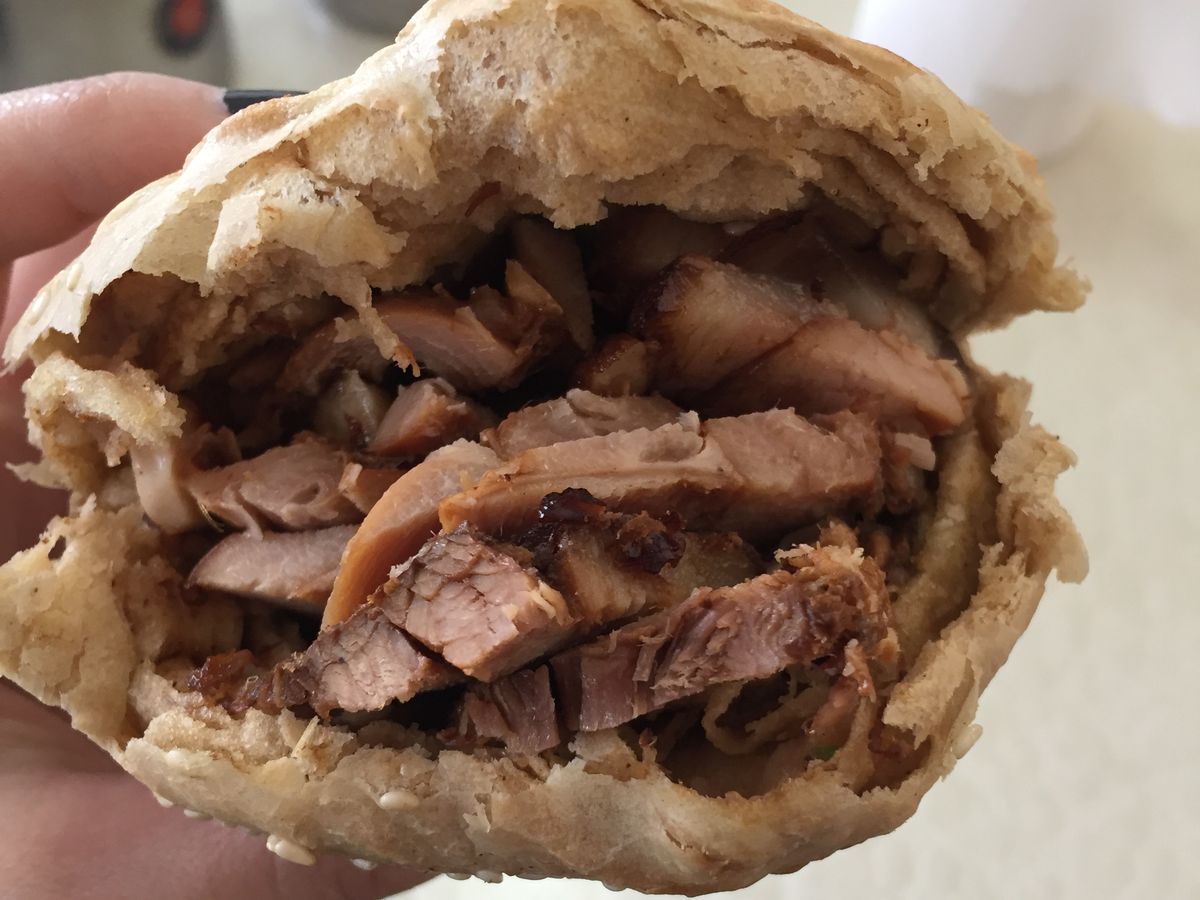 昼食は地元の食堂のようなところを案内いただいたのですが、安くて美味しくて最高でした。スープと煎餅?で24元だったと思います。ごまパンに焼豚がはさんであってジューシーで、まさに自分が食べてみたいと思っていた地元のごはんでした。中国語は数字すらわからないわたしたちには自力で注文するのは無理だったと思います。感謝しています。