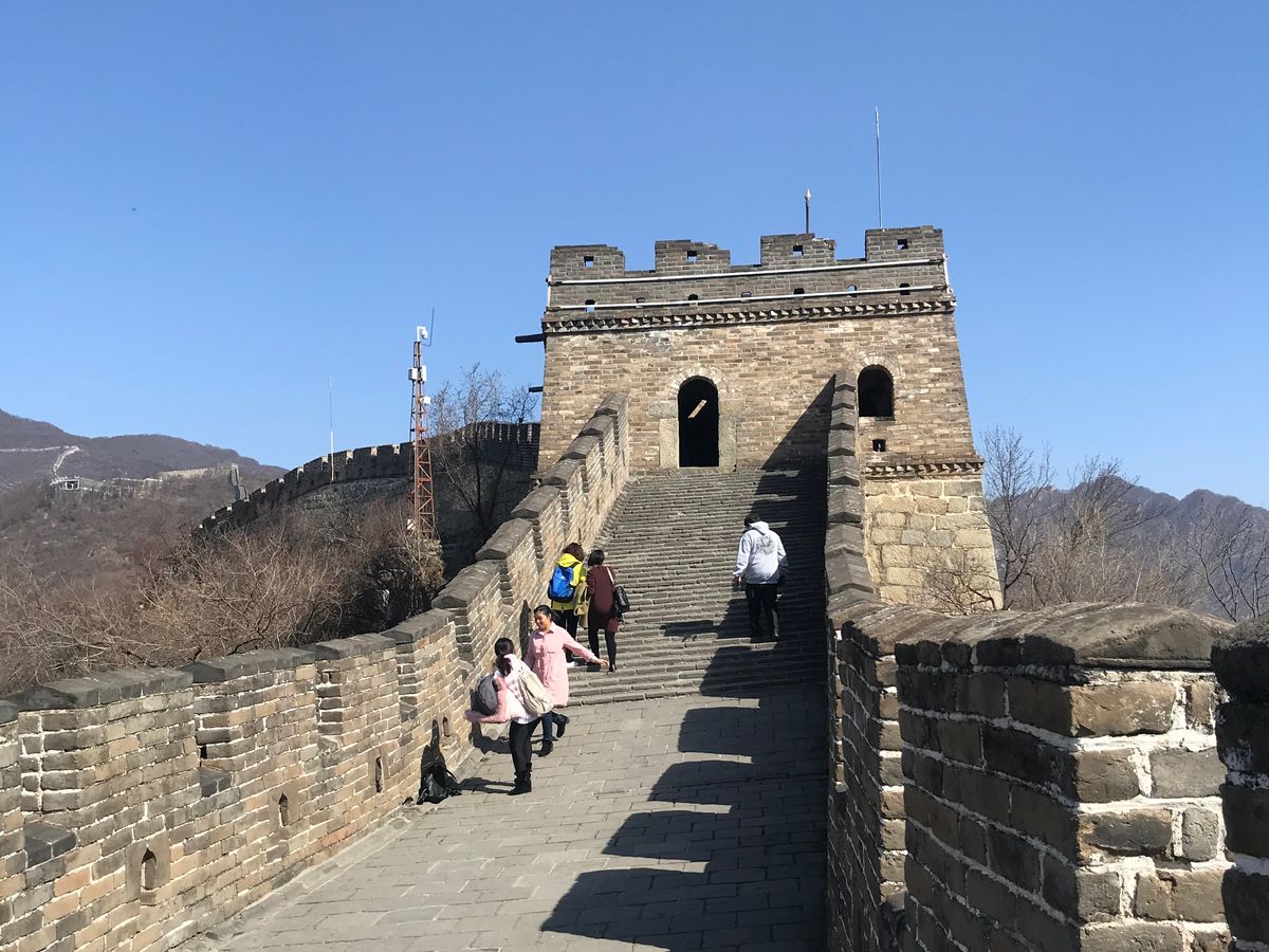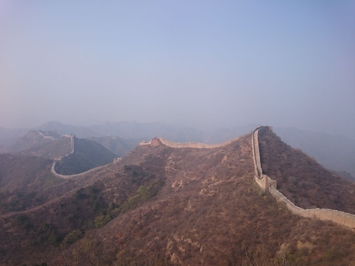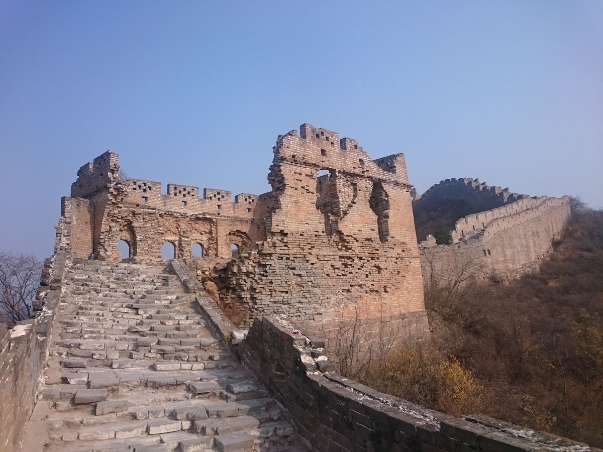 紅葉が終わりかけの晴天に恵まれ、誰もいない長城を自分のペースで歩く事が出来、モンゴル軍の侵入防止のために建築された 崩れ落ちた望楼などを見ることができて感動です。