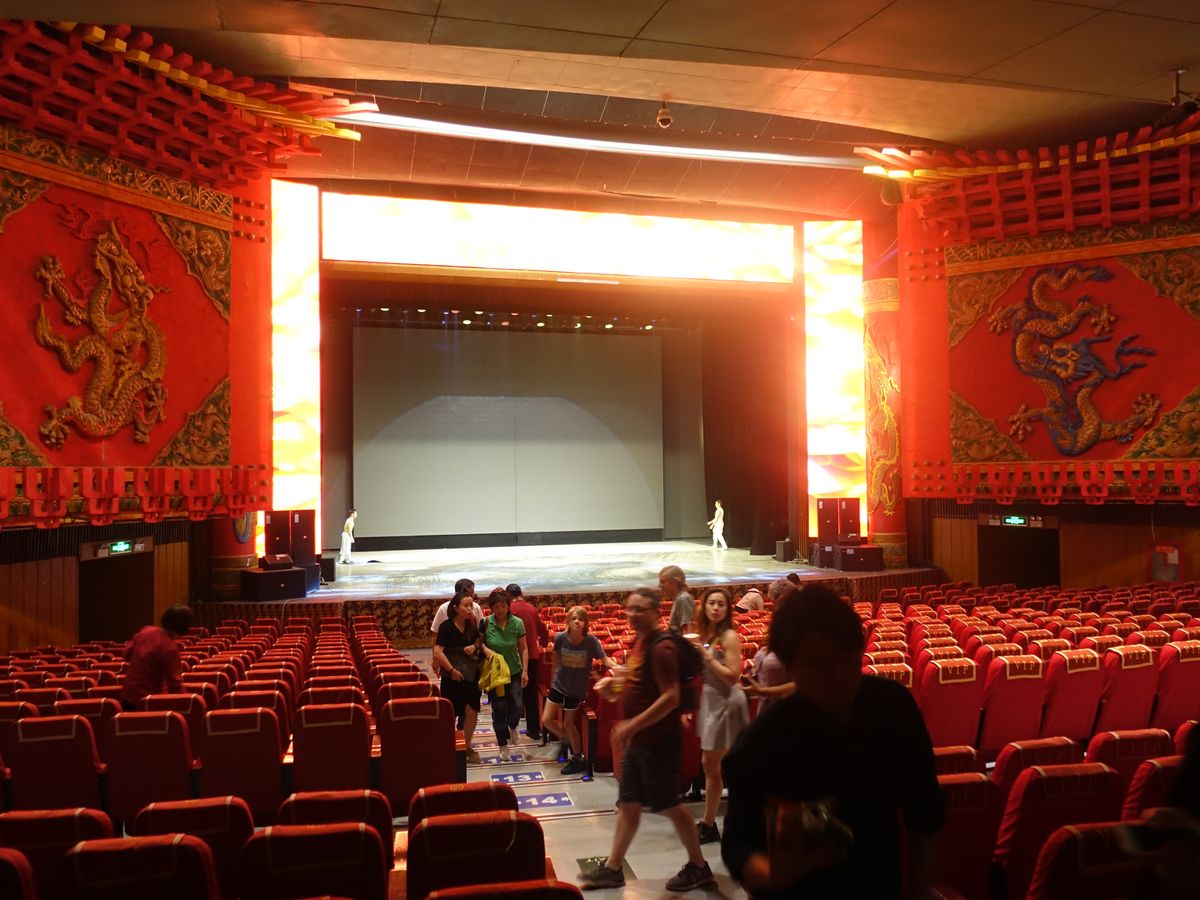 チケットの授受はスムーズ。事前に予約した方がいい。雑技は何度か見てるけど似たような構成が多い。椅子積み上げやバイクなど。公演の間の入れ替え事に舞台上で練習や談笑してるのはいかにも中国っぽい。でも北京に来たら一度は見るべき。損はない。
