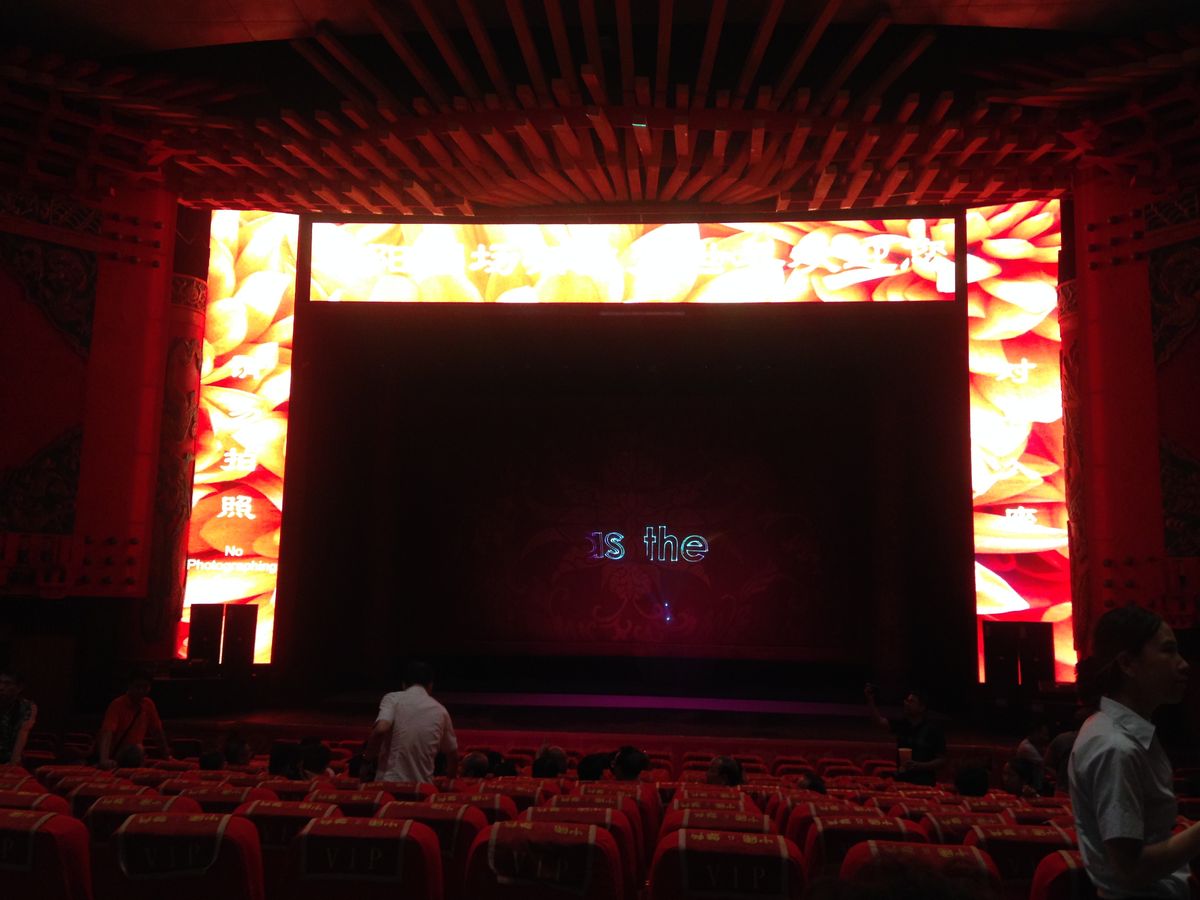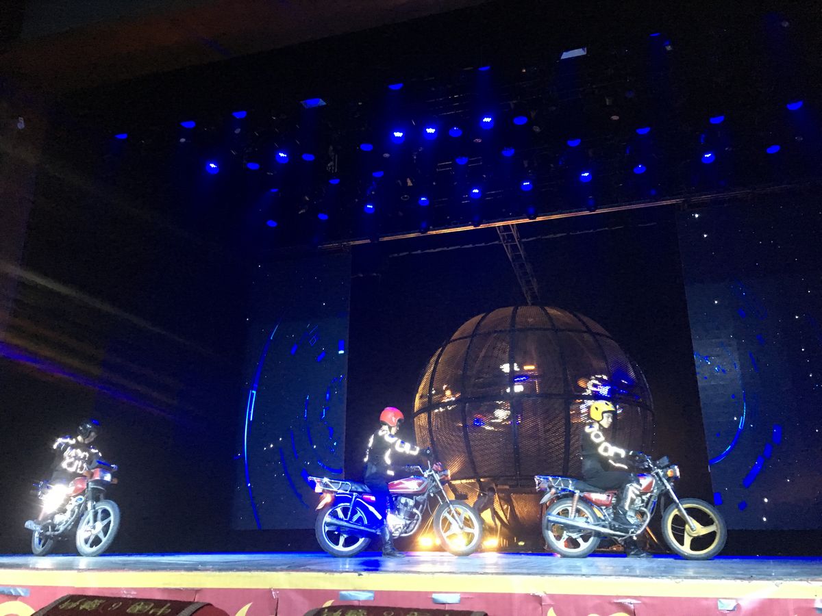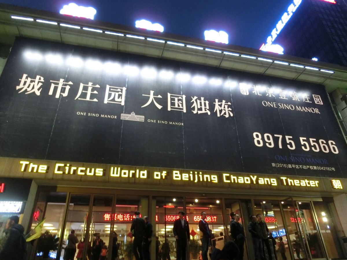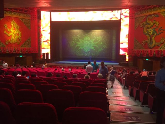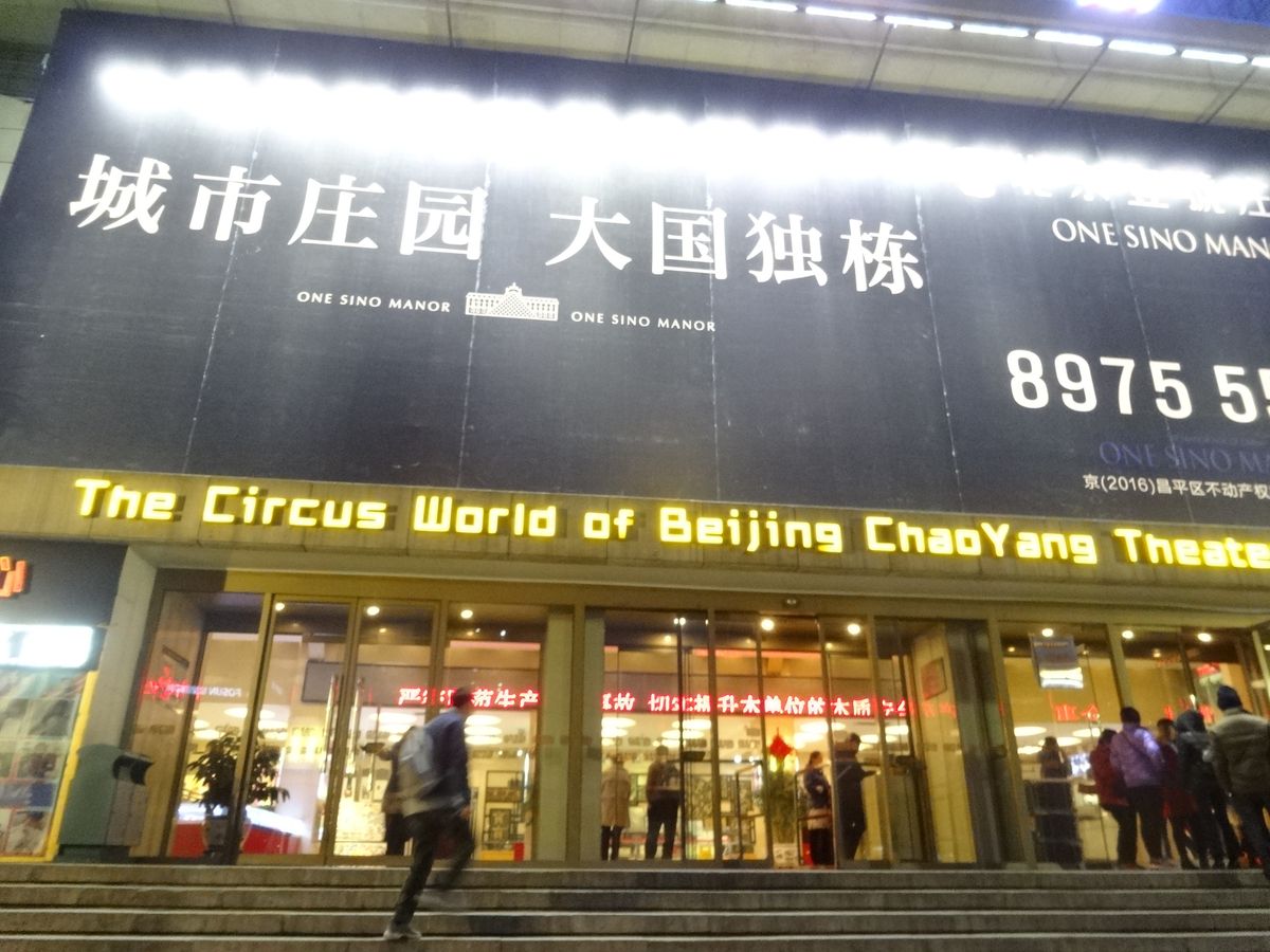 2015年10月、私たちにとっては初北京で家族旅行の初日に行ってきました。自転車一台に十数人が乗ったり、傘をまわす等は予想範囲内でしたが、座布団をとにかくたくさんまわすという妙技は、その発想にユニークさを感じました。モトクロスバイクも、ザ中国でしたね、迫力がありました。次々に雑技が披露されるのですが、バックに流れる音楽が場面が変わる毎にブツ切れで余韻もなく、なんだかこういうところも雑技らしいのかな、と思ったりもしました。11列目でしたが、十分よく見えました。前の数列はだれも座っていませんでしたしね。前方の観客(欧米系のグループ観光客と思われる方)がiPhoneで何度か写真を撮っていましたが、後方から警備スタッフらしき人が来て制止していました。劇場入り口には、軽食やスナック菓子や飲み物の売店や土産物売り場がありました。