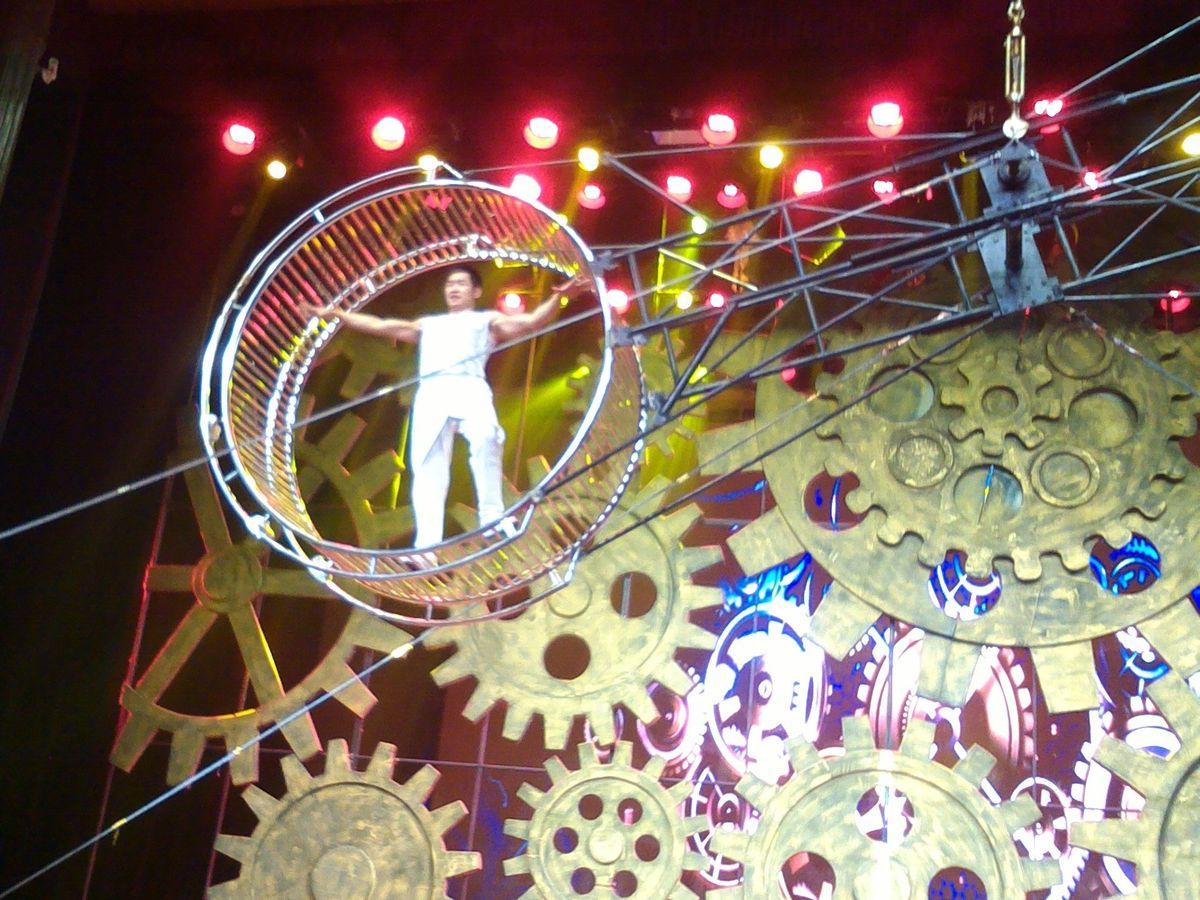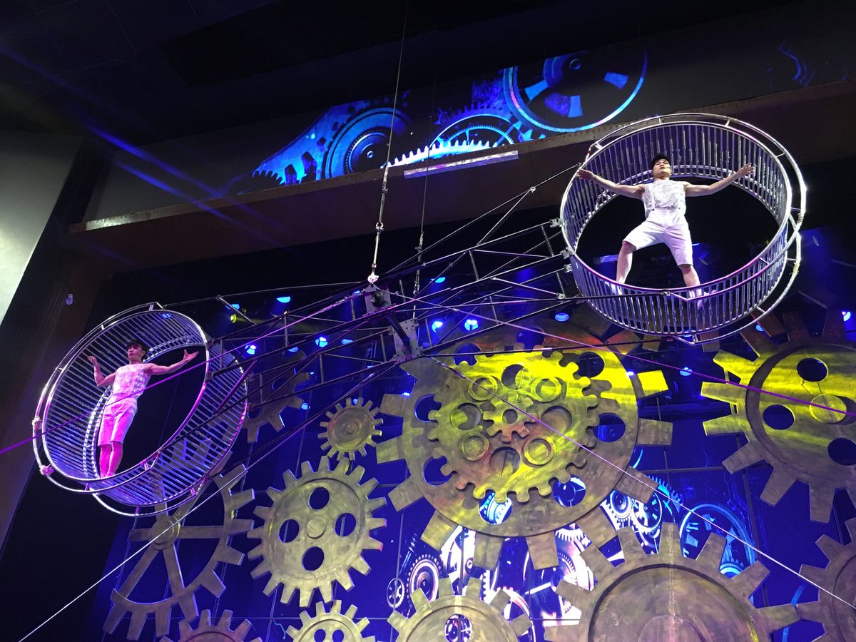 前から2列目ということで、近すぎて舞台全体を一目で把握することが困難であった反面、目の前でパフォーマンスが行われるときは、演者が自分の方を見ながら芸をやってくれて、まるで席の名前につけられたようにVIP待遇であるように感じることが出来た。芸の種類についても、体操系、帽子投げ、傘回し、自転車芸、バイク芸・・などと多種にわたって見ごたえのある芸で埋め尽くされており、満足できるものであった。