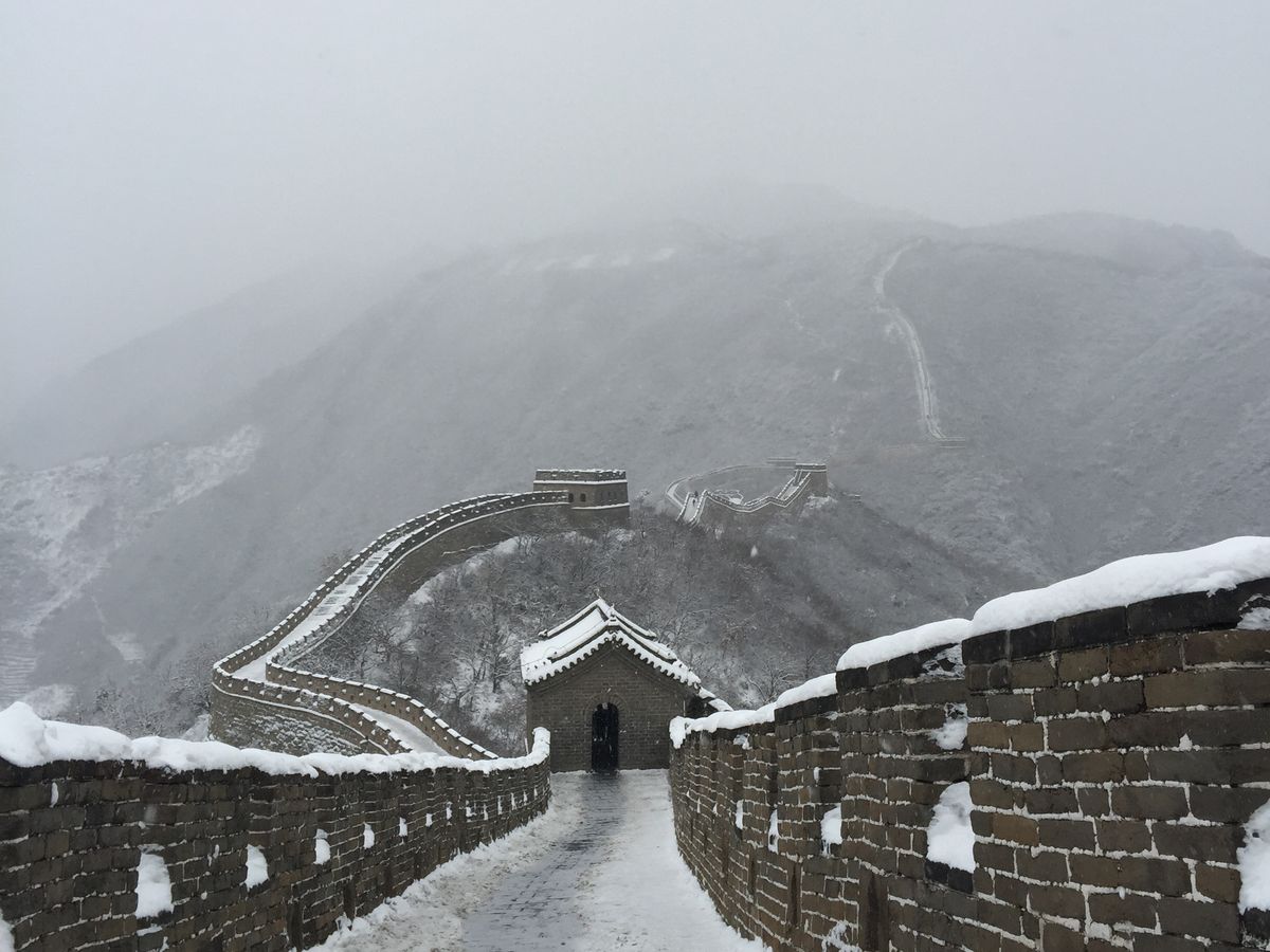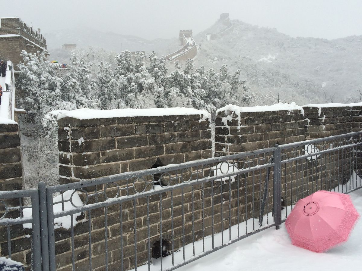 今回は、長城、明の十三陵、頤和園の3か所を周るコースでしたが、朝から雪で不吉な予感。