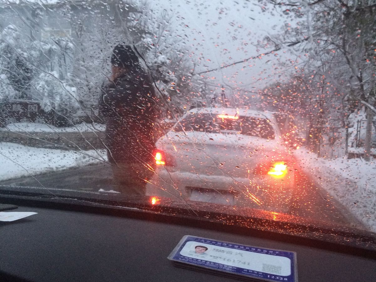 転倒者が続出、危険な状態でした。明の十三陵に向かおうとしましたが、道路が閉鎖されて