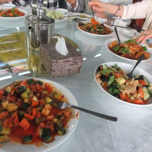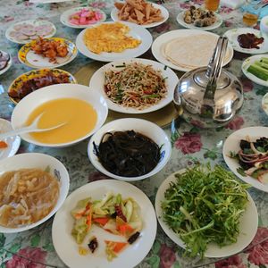 昼食付きのツアーでしたが、ジャージャー麺も副菜もとてもおいしかったです。日本にはない中国野菜(名前がわからないのですが、茎を千切りにしたような料理でした)がとてもおいしかったです。