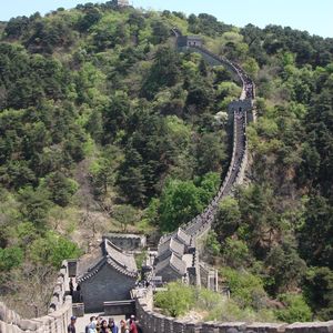 これが先ずは率直に述べたい感想ですね。今年、中国はメーデー4連休で、とにかく人人、また人で大変でした。7時30分にホテルを出ましたが、あちこちで渋滞に巻き込まれ、長城に着く前に先ずはグループ食事となりました。全般に炒め物が多く、約半分は残したでしょうか。長城に着いたのが昼頃で、ようやくといったところでした。しかし快晴で風も心地よく、素晴らしい眺望で、疲れも一蹴され、家族、皆、笑顔となりました。以前、八達嶺に行ったとき激しい人込みでしたので、今回は慕田峪長城にしましたが、確かに歩きやすく、城壁の保存も良く、こちらで正解でした。しばし中国の激しい存亡歴史に想いをはせました。ただ、滞在時間が35分ほどで、残念でした。滑り台での滑降もできず、往復がロープウエイでした。帰りの明十三陵、特に神道は静かで気持ちが落ち着きました。帰りも混雑で、結局は17時予定の帰りが19時と遅れました。もし、定年後、時間がありましたら、平日にゆっくりと、安く、時間を気にせずにもう一度行ってみたいと思ったところです。(最後に、添乗の方も知識豊富で勉強しておられたと感じました。対応も良かったです。)