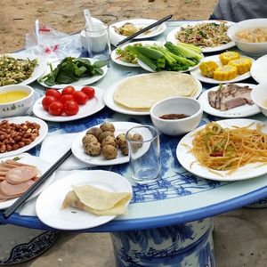 中国は5回目でしたが「春餅宴の昼食」のような食事は初めてで、とても良い思い出になりました。暖かい日でしたので、リュウさんがお店の方に交渉して下さって、屋外のテーブルでお花見兼ねて楽しく食事も出来ました。