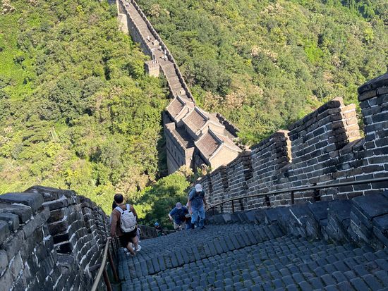 長城に到着後、約1時間ほどは訪問客がまばらで、貸し切りと思えるほどに十分に満喫できました(写真をご参照)。ロープウェイ乗り場の14番目の関所まで行って引き返し、9:30ごろにはスライダーに乗ってスムーズに下山することが出来ました。