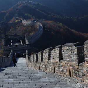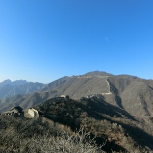 8時20分頃、慕田峪万里の長城に到着。シャトルバス、ロープウェイを乗り継ぎ、長城に着いたのが8時40分頃。冬のオフシーズンのため、人が極めて少ない。自分の先には、見える範囲で(数百メートル)数人しかいない。後ろにも全然いない。雄大な景色を独り占めする気分で、最高でした。9時50分頃にロープウェイ乗り場に戻る頃には、だいぶ人が増えていました。日本人は2人組の1組しか会いませんでした(気付かなかっただけかもしれません)。