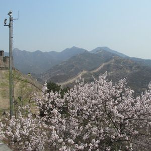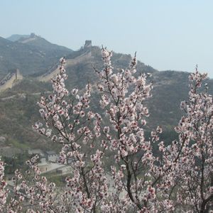 長城が目に入るところでは、桜の花のように見えるのは何の花ですかとお聞きしたら、北京周辺の方々には身近な花だそうで、杏の花といわれました。