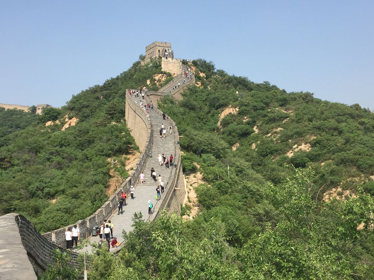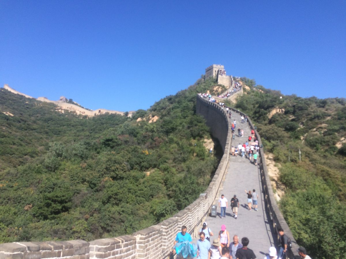なんとかニューオータニホテルまで辿り着き、ツアー開始です。ガイドの方は日本語がとても堪能で、時折冗談など交えて最初の目的地である頤和園へ向かいます。当時の風習など含めて歴史的な背景の説明をして頂いたので、中国の歴史に少し触れられて興味深かったです。その後、明の一三陵についても詳細の説明を頂きました。近くの庶民的な?レストランで昼食後、万里の長城へ向かいます。ここでは、これまでのガイドと一緒に歩き回ることはせずに、1時間超の自由行動となります。長城は自由に歩けますが結構急な坂の箇所もあり手すりに捕まって移動です。ゆえに靴は運動靴または同等レベルがおススメです。また、夏場の晴れた日は、全く日陰はないので日焼け止めは必須です。一方、ガイドの曰く、冬はマイナスになるようで服装は要注意とのことです。