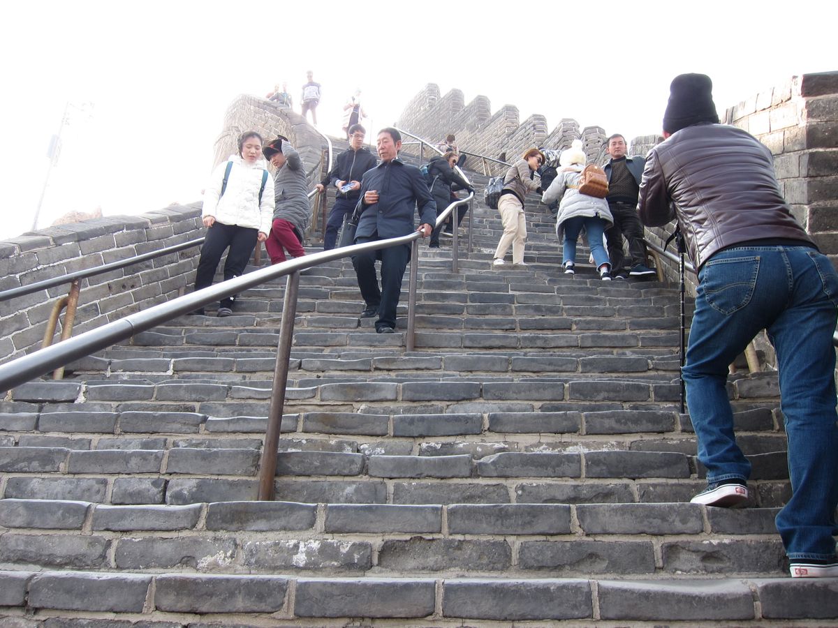 雨模様でしたが、万里の長城に上がるころには雲がとれて日差しが。澄んだ雨上がりの空気のなかで見た壮大な万里の長城のパノラマは、一生忘れません。