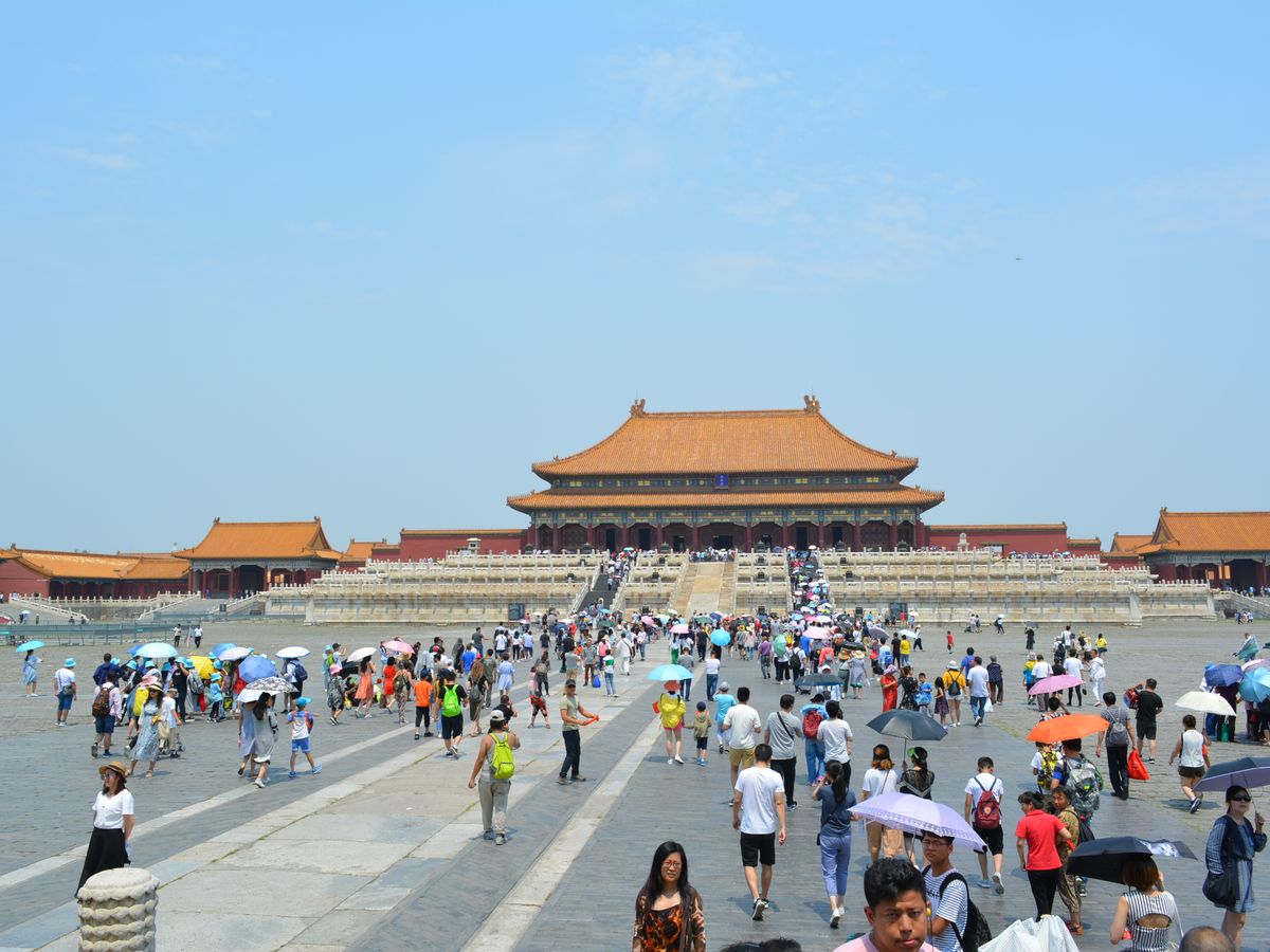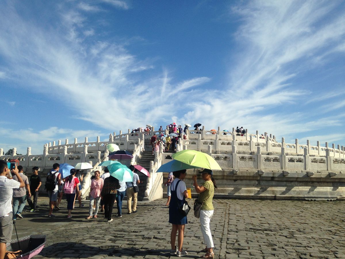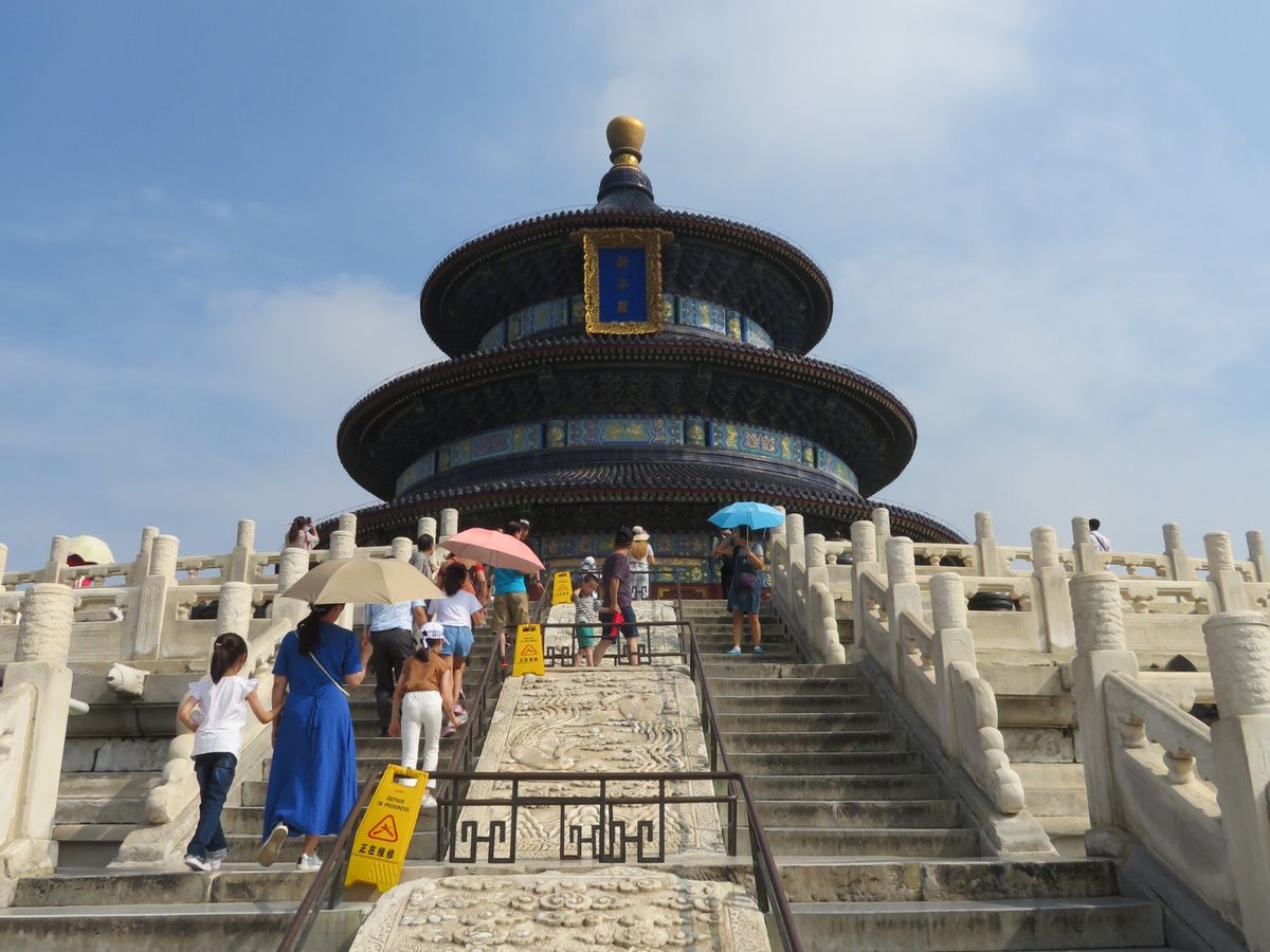 ツアーは2組でまわりました。日本語を話せる中国の現地ガイドがつき、朝8時にホテルに迎えに来てくれて、車での移動です。天壇公園、天安門広場、故宮はとにかく広いので、ツアーでないと回り切れなかったと思います。さらに故宮は1日8万人の入場制限をしているそうで、参加日は8月16日水曜日の平日でありながら、昼前にチケットは完売していていました。ツアーを申し込んでいなければ入場することもできませんでした。