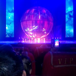 狭い球体の中をバイクが走り、垂直・水平に走行したりします。ラストは、客席がどよめきました。