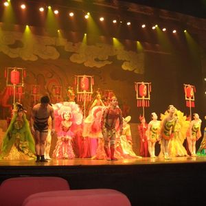 上海や中国各地で見慣れているせいか、ここの雑技は普通でした。華やかさに少し欠けます。演技の時間も70分、演目は10種類です。初めての方には良いかも?帰りのタクシーを拾うのが大変でしたので覚悟を。