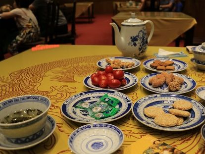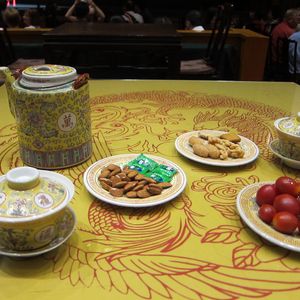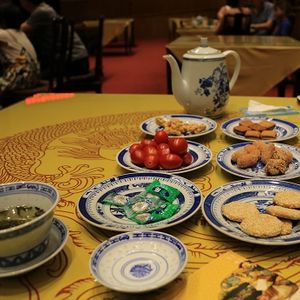 席にはお茶とお菓子が用意され、お茶を飲みながら京劇鑑賞をしました。英語字幕もありますが、日本の狂言のように見ているだけでも楽しめるものだと思います。終了後、点心をいただきました。味も量も十分だと思います。