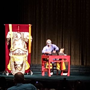 京劇自体は、ストーリー性というよりは、見応えのある踊りが中心ではと考える。概ねのセリフが舞台の両側にある大きな表示板に英語で表示されるが、早過ぎて踊りを観ていると読んでいる暇がない。