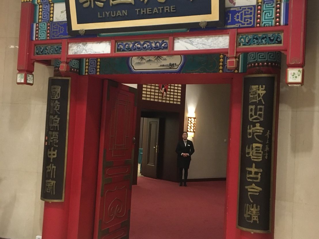 梨園劇場は建国飯店ホテルの中にあるんですね。ホテル入口の職員さんにここでよいのか聞いたら「こちらであってますよ」とドアを開けて通してくれました。ニイハオ北京の方もすぐに私を見つけてくれ案内してくれました。