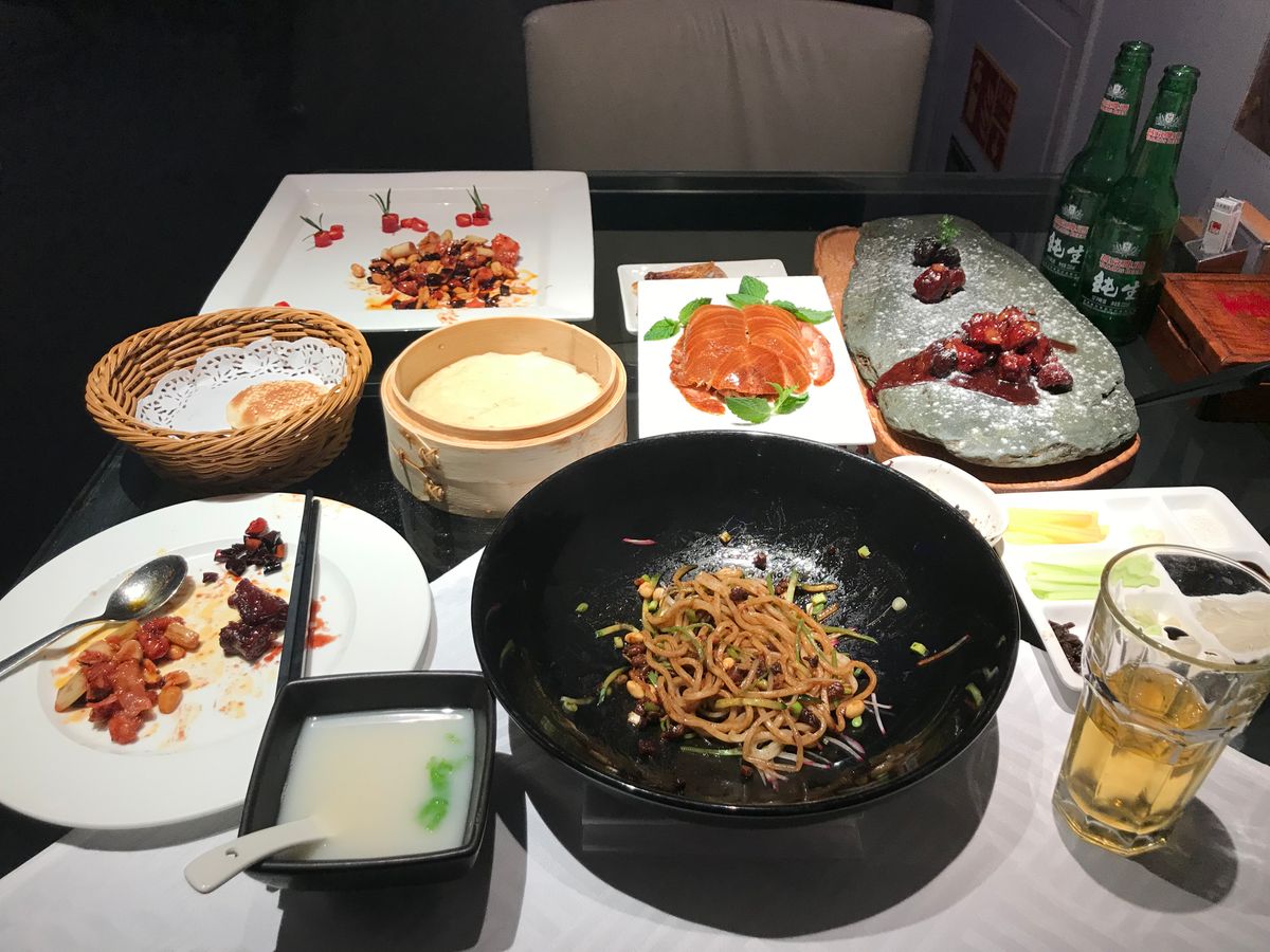 北京ダックは老舗のお店だそうで地元の方が殆どの様子。ご厚意で北京製造のビールも頂きました。ビールは軽くて飲みやすいし、北京ダックもお食事もどれもとても美味しく2人では一品一品がかなりのボリュームで食べきれず、残った分は包んでもらいホテルに持って帰りました。ドライバーさんもとても親切でした。