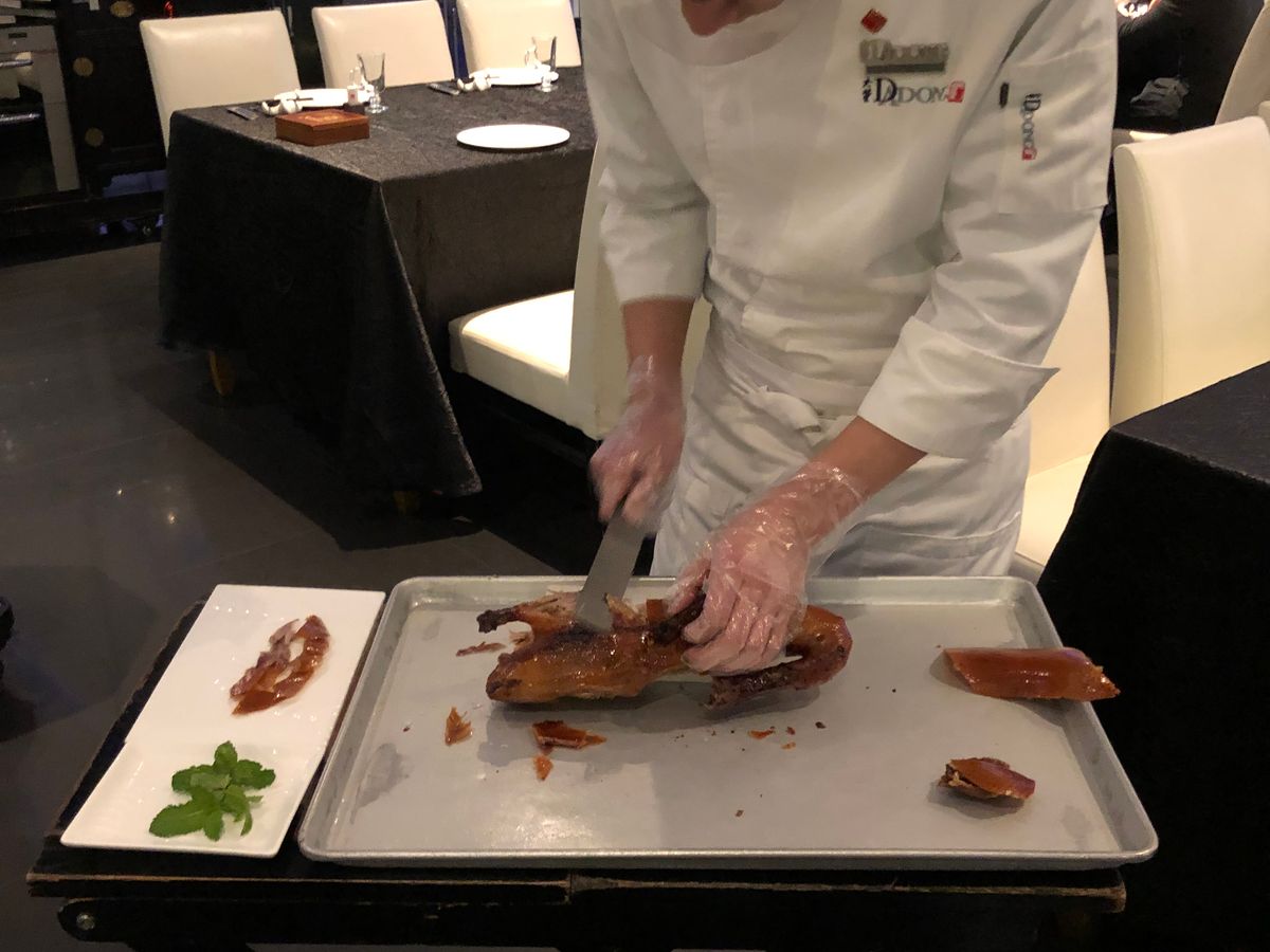 人気のお店なので、予約をしてよかったです。親子二人でしたので、他の料理も食べてみたく小籠包のようなものを注文、北京ダック1匹は多かったですが(女性2人)、半分などが出来なかったので、1匹。少し残しましたが、とても美味しかったので満足しています(^^)/英語が通じますが、翻訳機で中国語で聞いても対応可。写真付きのメニューだったので指さしでもOKでした。お会計はテーブルで行いました。サービスも良かったのでお勧めできるお店です。