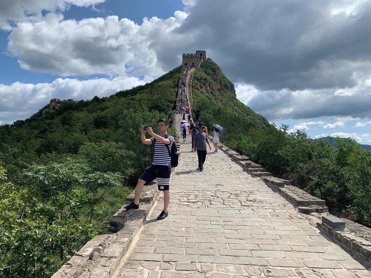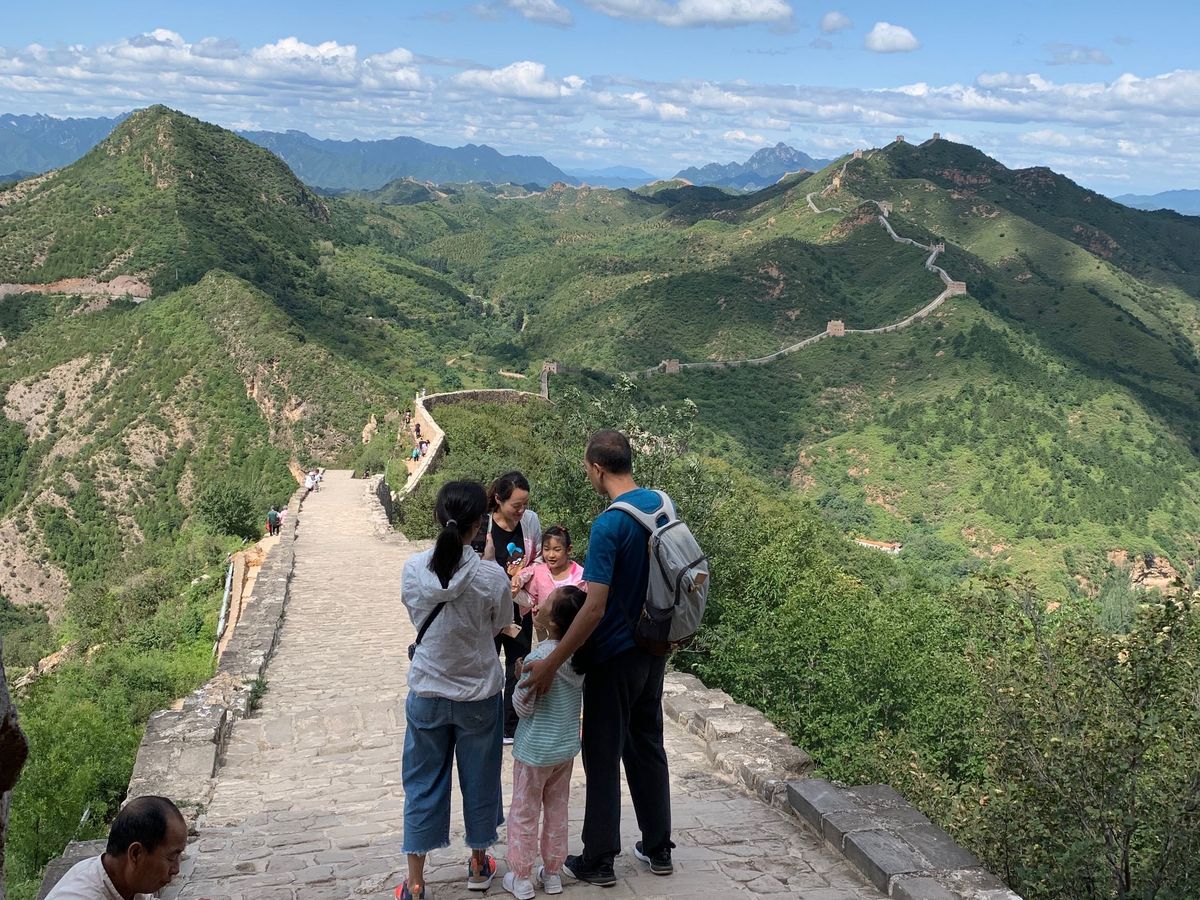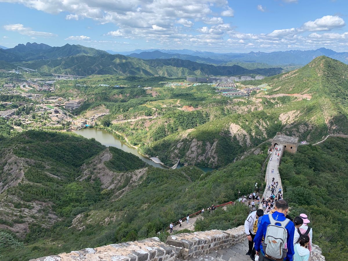 司馬台長城は今までに行った長城よりも荒々しく、斜面がかなり急です。中国の夏休み期間中で小さい子供がたくさんいましたが、幼児~未就学児には厳しい感じです(全然登っていましたが....)。修復が終わっていないであろう箇所があったり、下に落ちそうな箇所があったりしますが、個人的には完全に観光地として整備されている八達嶺より自然な感じがして好きです。ロープウェイを降りてから長城にたどり着くまでの道のりが意外と長く、長城に着くまでに息が上がってしまいましたが、ここから見える景色が非常にキレイです。