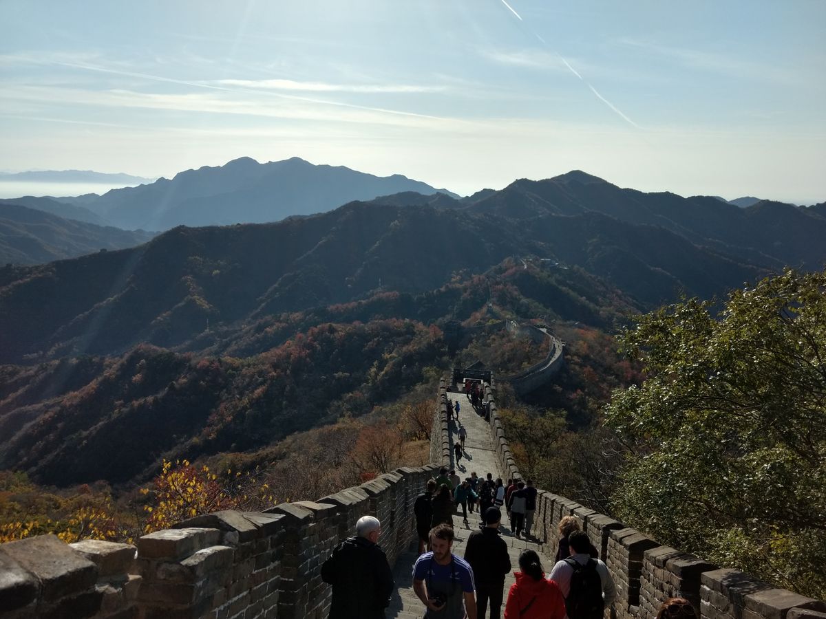 日本語を話せるガイドさんが親切、丁寧に、案内してくれたおかげで、チケットを買い、バス乗り場まで行くのにスムーズに行動できました。優しい良いガイドさんでした。朝6時半に出発して、8時頃着くと、人が少なくて超快適!1番上まで登ったら、足が痛くて疲れはてました。普段歩き慣れてない人や、午後、たくさん観光する人はそこそこ登ることをオススメします。大気汚染の影響か、景色は霞んで見えましたが、万里の長城は素晴らしかったです。