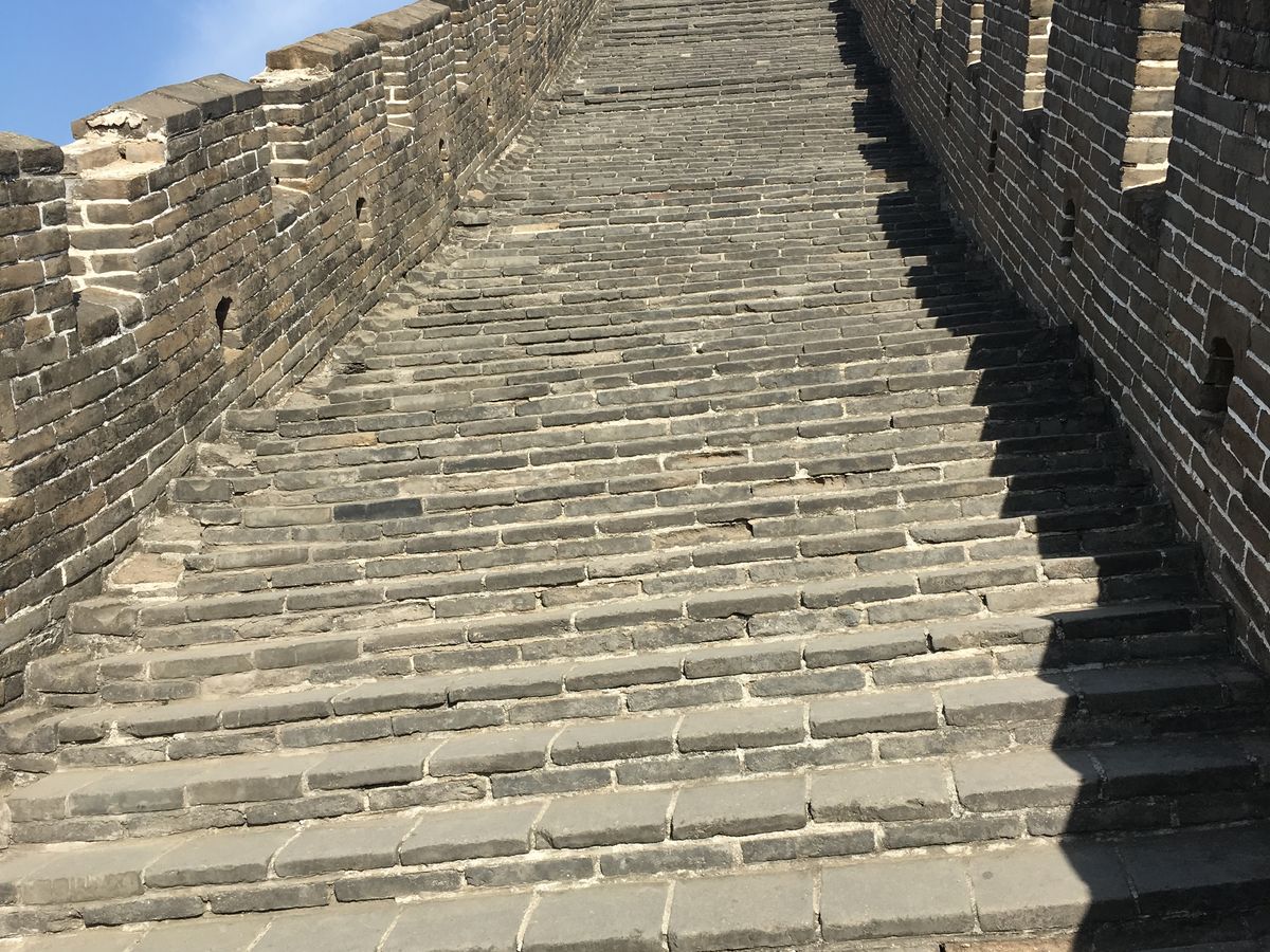 長城はというと、結構な勾配や段差があり、現地滞在は1時間半くらいなので進んでしまうと戻る時に走る羽目になってしまします。3月中旬に行きましたが、日差しもあり長袖シャツ1枚でも十分です。体力のある方は良いですが、自信のない方等はゆっくりとした方がいいかと思います。