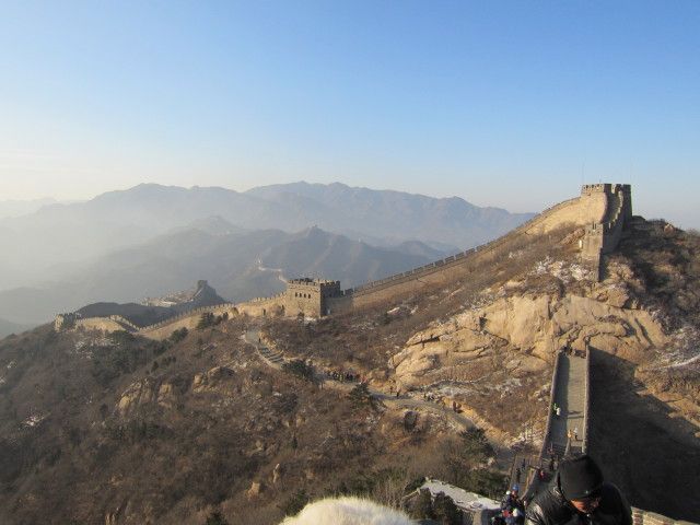 12月4日に北京に友人といきました。この日は昨日ニュースにもなったほど濃霧で、雪もちらつき寒い日で少し先もみえないほどの霧でした。万里の長城はロープーウェイを使用し