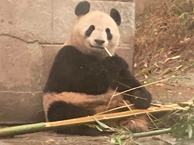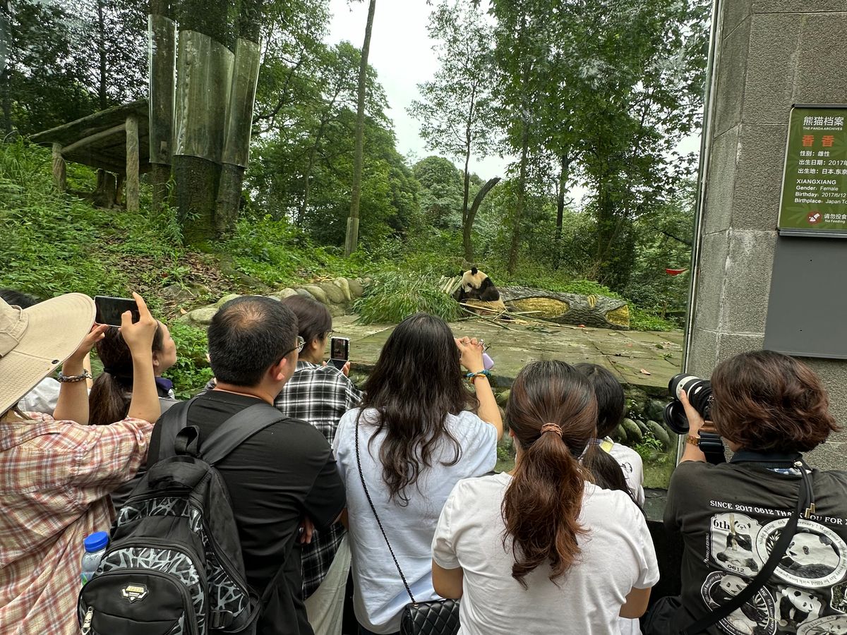 日程表では、午前中がパンダ飼育体験のボランティア、午後が観覧でしたが、ガイドさんがシャンシャンが出てきているか気にしてくださり、臨機応変に案内してくださったおかげで、元気に食事をしているシャンシャンに会えました!