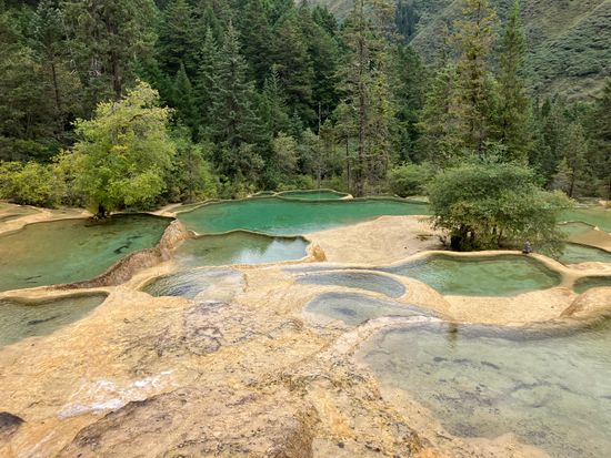 黄龍では、前日に6月にしては珍しく雪が降ったらしく、雪山と綺麗な幻想的な湖が見れて、とても良かったです。九寨溝では、合間にバスに乗って、名所を回って楽に回れたのと何より本当に水が綺麗で、角度によっても色の濃度が違ったり、ずっと感動しっぱなしでした。またチベット族の家も見れて良かったです。最高の旅になりました。秋は紅葉が綺麗なのと、水がもっと増えるらしく、また来たいです。