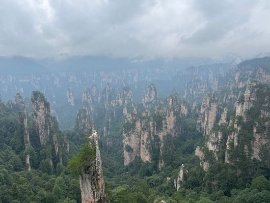 武陵源のハイライト!仙境のごとく聳え立つ奇峰群は、まさに異世界。悠久の時が創り出した絶景に、大地の生命力を感じます。雄大な緑と奇岩のパノラマは、一度見たら忘れられないものになるでしょう。