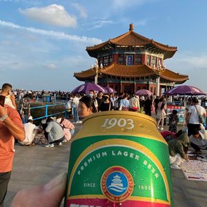 街中のいたるところで生ビールを売ってて、ビニール袋に生ビールを入れて売っている屋台もあります。ドイツのような美しい街並みで、青島ビールを堪能しました。