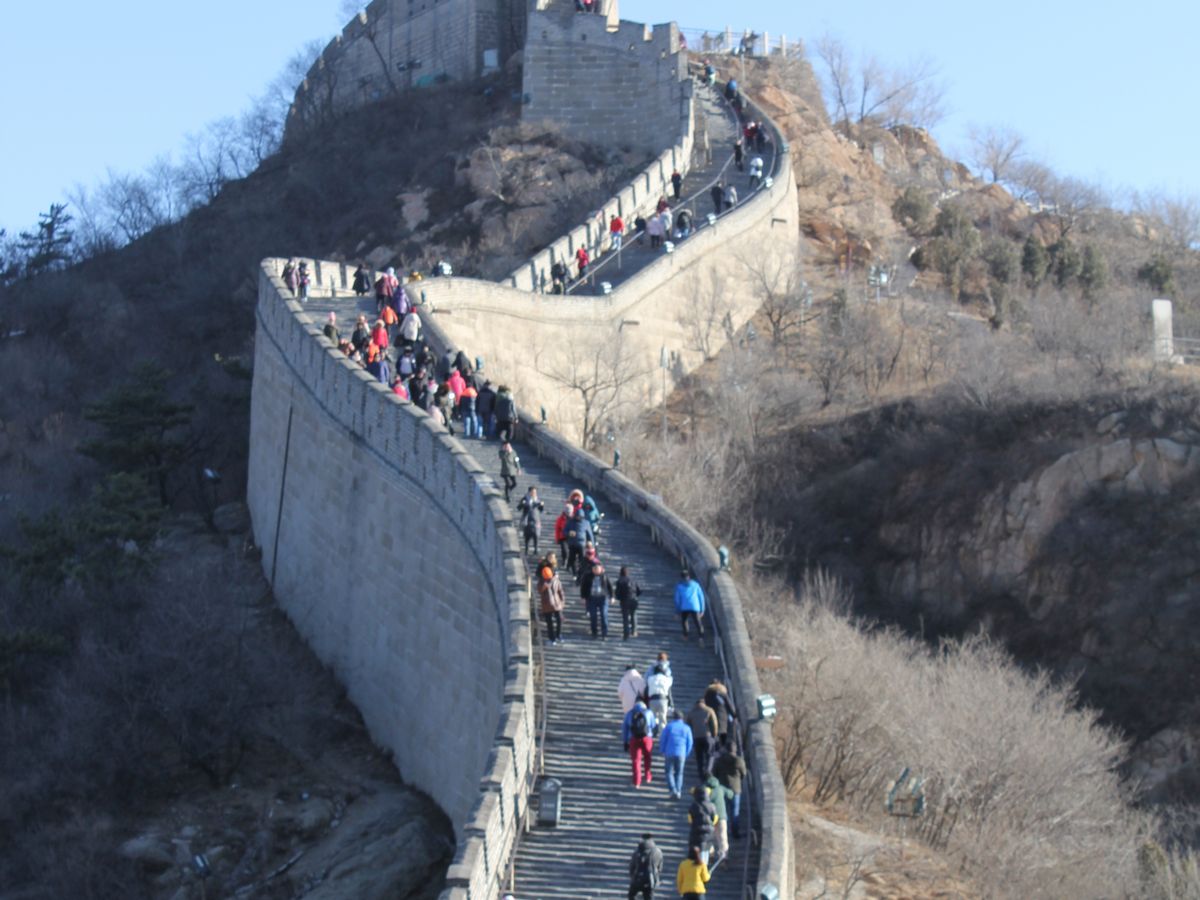 真冬の長城観光(八達嶺):寒さを我慢すれば、人の混雑もなく、冬晴れのもと、最高でした。次回は、夏に長城にトライしたい。