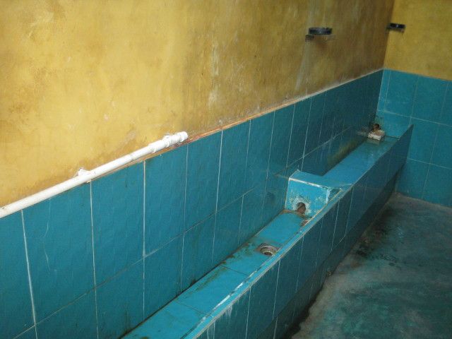当日は天候に恵まれ対日デモ影響か見学者も少なく1対1のガイドの説明がよく聞き取れ、こちらの質問にもわかりやすく答えて頂けた。ただ空港近くのホテルより約250?の走行中トイレ休憩も無く走行のみ。旅行者には走行距離の説明も無く近いものと勝手に判断していた。距離は帰り間際に聞いものである。写真1の右側の建物が少し右に傾斜している。又この住居は一夫多妻制の元、生活していたのも写真2の説明でよく分かった。写真3は帰途途中のレストランの男子トイレの小便器である。