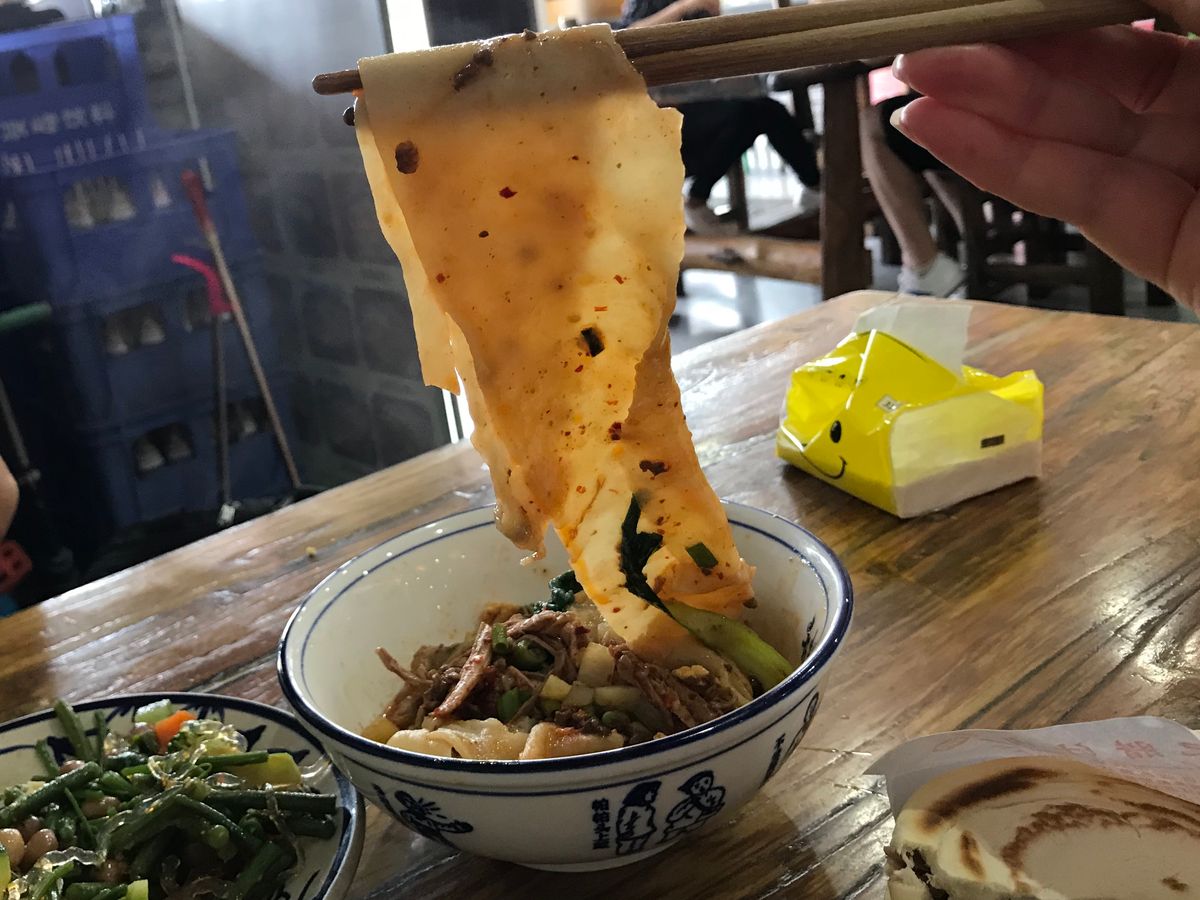 お昼のビャンビャン麺は、すごく美味しかったです。あんなに平たい麺は初めて食べました。