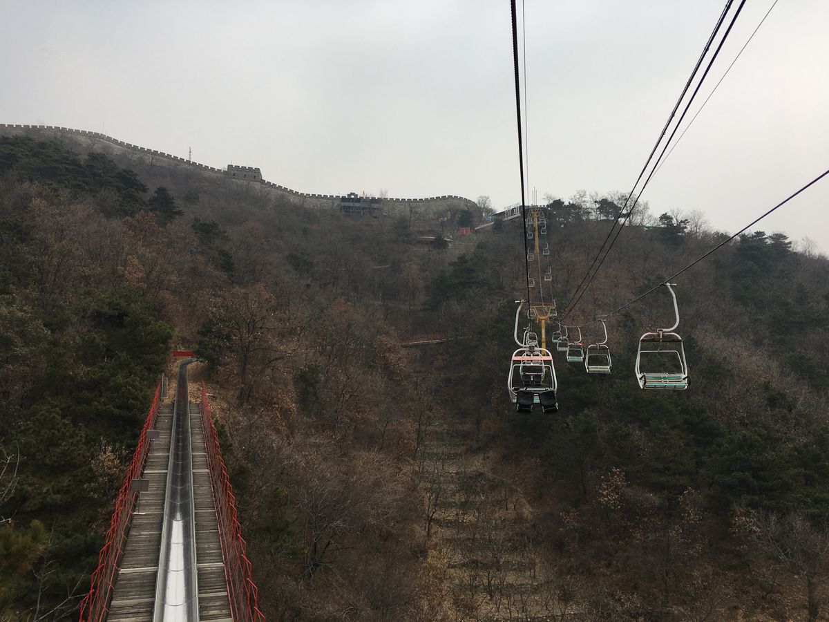 万里の長城にロープウェイで登り帰りはスライダー。