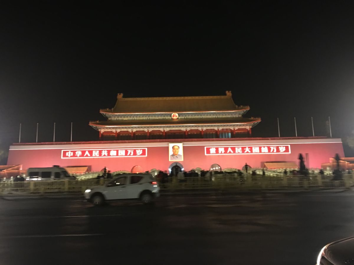 万里の長城を堪能し、ゆっくり食事をした後でも少し時間があったので、天安門広場を車から見ることが出来ました。夜の北京のキラキラした街並みも綺麗でした。