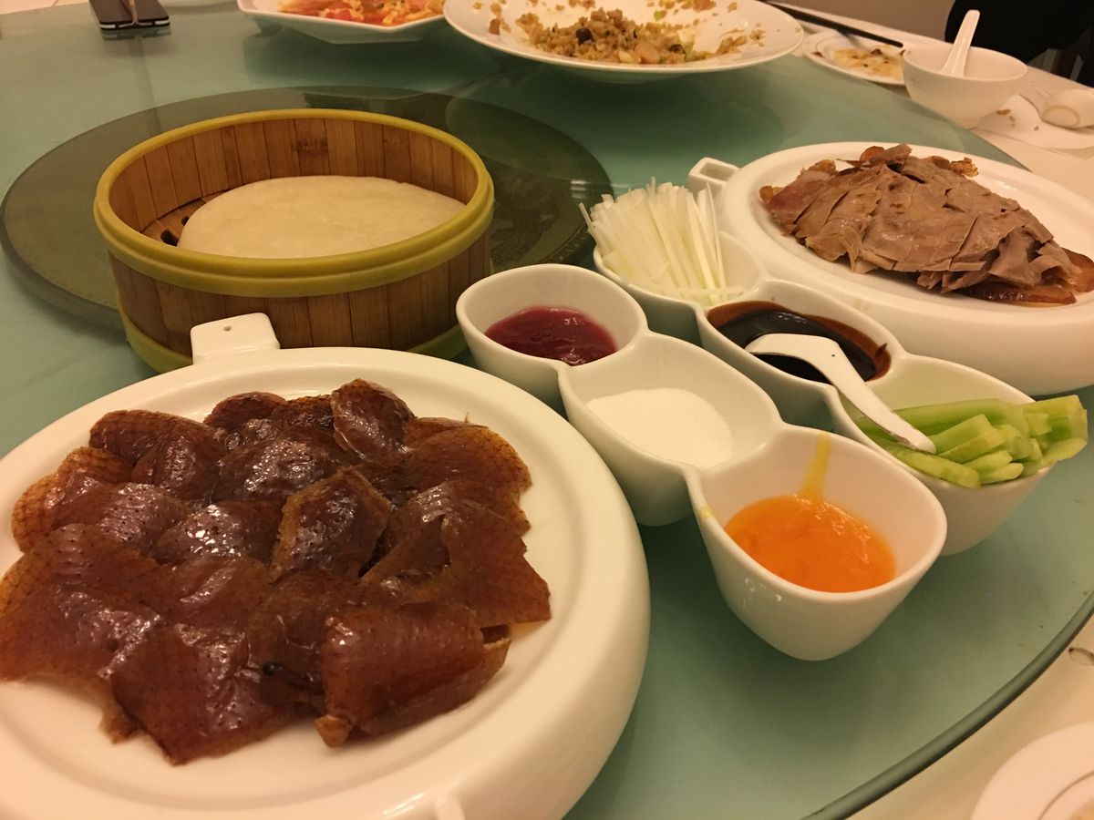 既に日没時間でしたので、景山公園んは諦めました。北京へのドライブ中は北京グルメ話に花が咲き、当初決めていた北京ダックか刀削麺か羊のしゃぶしゃぶか散々迷いましたが、北京ダックに決定。店からは自力で空港まで行くので行きやすいお店を提案していただきました。