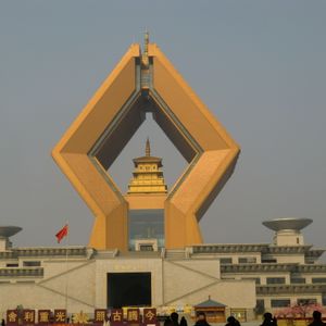 お釈迦様の方が大切でしょうが、食も大事。それは、横に置いて、法門寺の少し手前にあるX字のような建物?タワー?